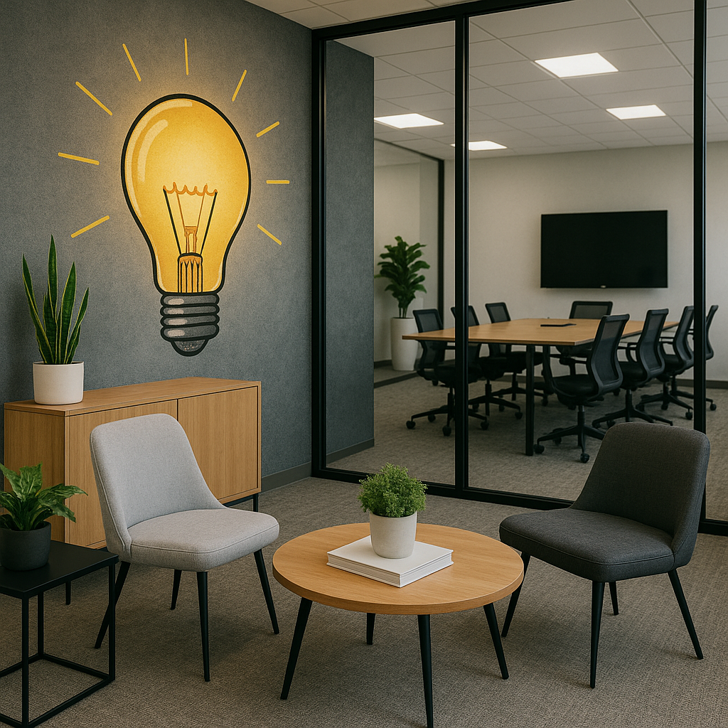 Dentro das empresas, a comunicação visual reforça a identidade da marca, promove um ambiente mais organizado e valoriza a cultura interna. Sinalizações inteligentes, murais motivacionais, ambientação com a paleta da empresa e a personalização de espaços impactam diretamente na percepção dos colaboradores e visitantes, melhorando a produtividade e o engajamento.